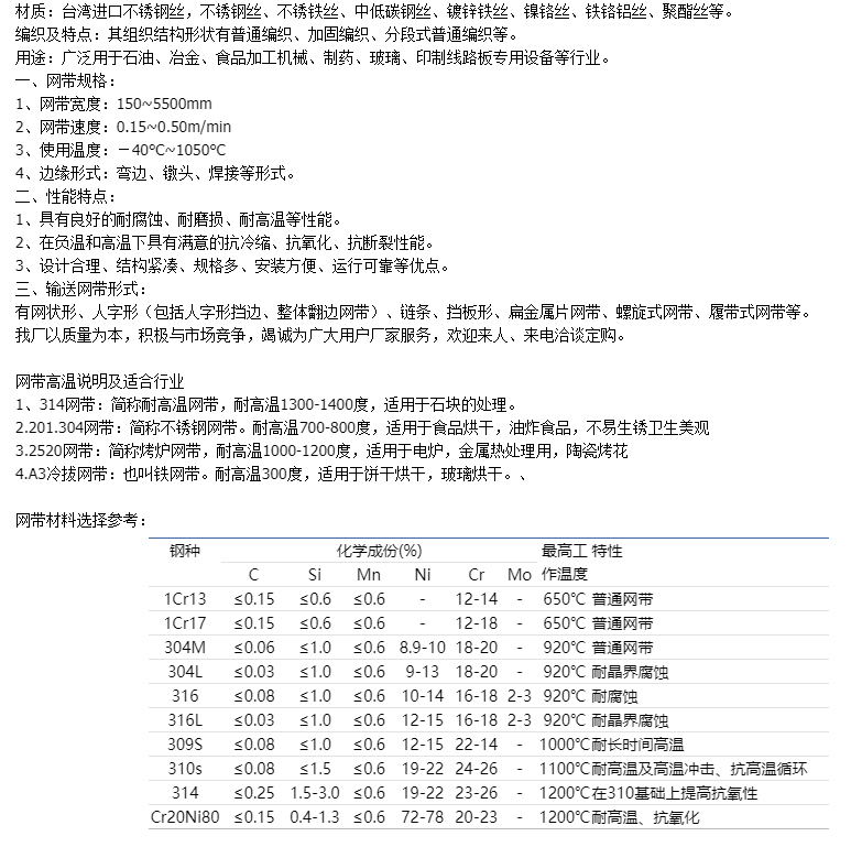 产品信息:材质:台湾进口不锈钢丝,不锈钢丝、不锈铁丝、中低碳钢丝、镀锌铁丝、镍铬丝、铁铬铝丝、聚酯丝等。